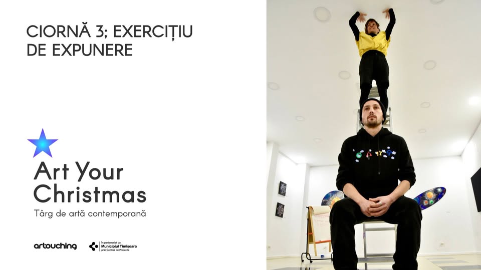 Program 23 decembrie – 11 ianuarie | luni-vineri, orele 17:00 – 21:00 | sâmbătă-duminică, orele 14:00 – 21:00Art Your Christmas se constituie ca un spațiu de întâlnire între arta contemporană și comunitate, un context în care creația artistică devine parte integrantă a atmosferei sărbătorilor. Evenimentul propune nu doar o expoziție, ci un târg de artă contemporană în care lucrările artiștilor contemporani: Delia Călinescu, Florin Drăgoi, Ilie Duță, Simona Homorodean, Róbert Köteles, Marius Jurca, Livia Mateiaș, Cosmin Vâlceanu, Lun Design, Elena Mazăre, Adina Ștefănescu, sunt prezentate ca obiecte de dialog cultural, dar și ca posibile cadouri, purtătoare de sens și identitate.