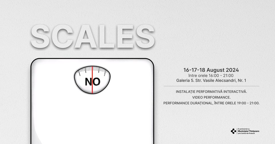 Instalația performativă va consta în acoperirea completă a podelei unei încăperi cu cântare analogice (cântar de baie) astfel încât să se creeze o podea formată în întregime cu cântare. Senzația va fi pentru cei care vor păși în încăpere că fiecare în parte este forțat să aibă o întâlnire cu propriul corp. Un gest aparent banal, dar care scoate la suprafață nesiguranțe, frici sau angoase legate de corpurile noastre. Pășirea pe cântar are o simbolistica importantă. Aceasta este o sursă de anxietate și frică provocate de presiunea socială. Fie că vorbim despre o persoana cu tulburări alimentare, de cineva care merge la doctor sau de un sportiv care trebuie să atingă o anumită greutate pentru competiție, cântarul este un obiect care cauzează neliniște. Actul de a te cântări este destinat unui cadru privat. Aducerea acestui element, respectiv cântarul de baie, într-un context public provoacă participanții și îi va scoate din zona de confort. Pe podeaua-cântar va fi întinsă o masă pe care vor sta diferite feluri de mâncare din care publicul va fi îndemnat să se servească și să mănânce. Prin adăugarea posibilității de a gusta din mâncarea de pe masă, instalația devine un instrument de descoperire individuală a temelor propuse de către SCALES. Abordând un subiect atât de universal precum corpul și imaginea acestuia în societate, SCALES va fi o manifestare artistică care va stârni curiozitatea publicului.