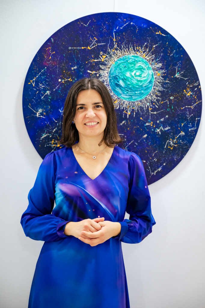 colaborări interdisciplinare, artista dezvoltă un limbaj vizual în care cosmicitatea, structurile organice, fenomenele fizice, intuiția poetică și introspecția se întâlnesc într-un spațiu comun.