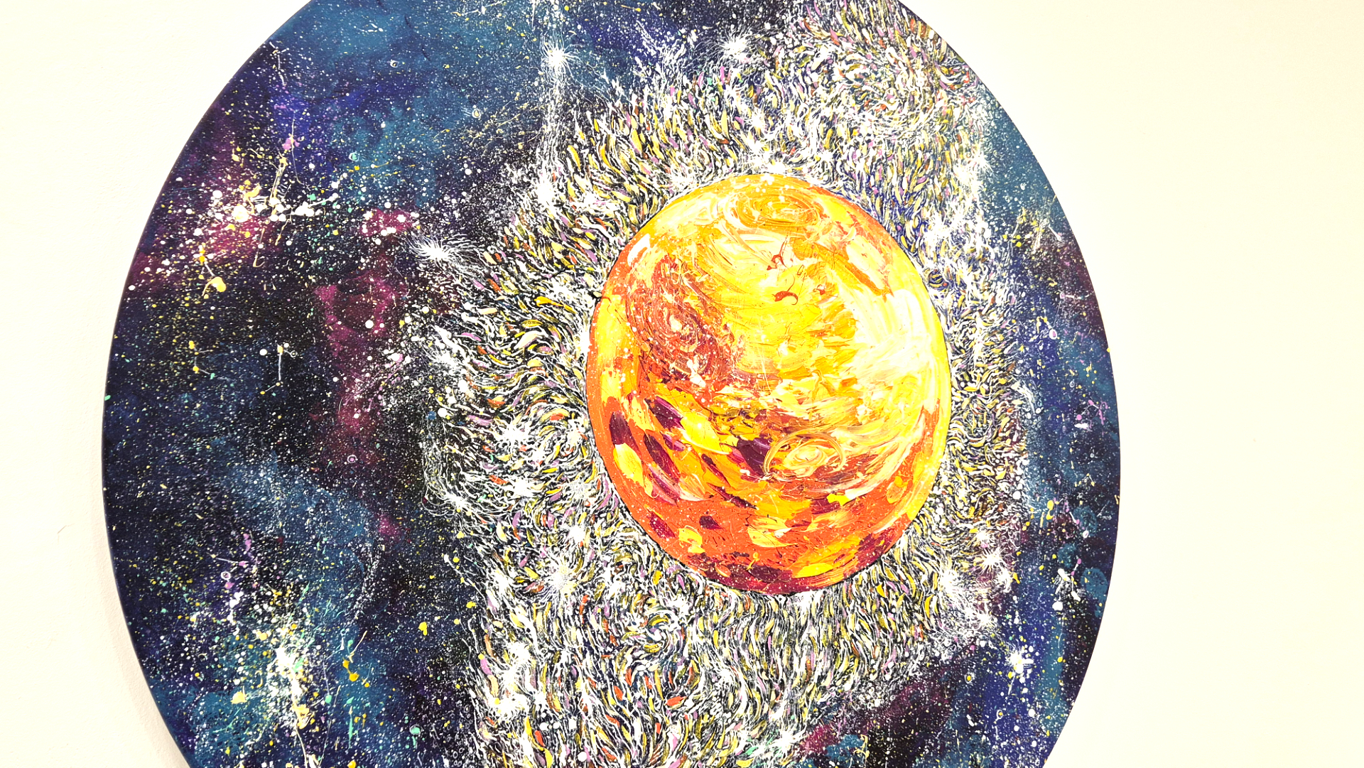 Livia Mateiaș explorează forța creatoare, energia universului care ne înconjoară și ne pătrunde. Pornind de la micro detalii organice și ajungând la macro structuri cosmice, artista transpune pe pânză ideea de creștere continuă, de expansiune a universului prin contrast, dinamică, zbor, imponderabilitate... Folosește tehnici vibrante și o cromatică plină de viață și capturează momentul în care energia devine formă și spațiul capătă sens. Prin tematică expoziția ne invită la autocontemplare, la a descoperi universul într-o coajă de nucă și a privi dincolo de stele spre unitatea cosmică.În timpul dintre evenimente se poate picta în spațiul amenajat pentru ateliere pe diferite tipuri de suport. Pentru cei care pictează va exista o contribuție minimă, în funcție de suportul ales, iar lucrările create le vor lua acasă ca o amintire frumoasă sau un cadou unic pentru cineva drag.